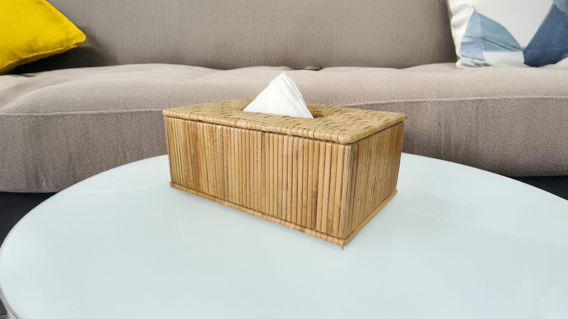 Rectangular Handwoven Cane Tissue Box – Double Pattern